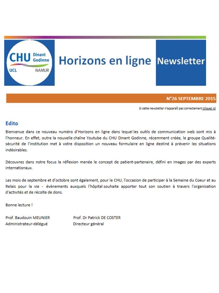 Newsletter du 26.09.2015 Plus d'infos...